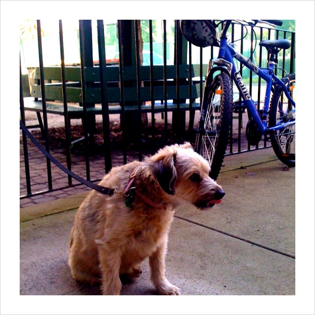 This lovely golden creature was a regular at our old library – now bulldozed to make way for a new one scheduled to open late 2012. I liked how this dingo-like dog would take a seat in a very casual way rather than wait on the ground for its owner to emerge loaded up with a week worth of books to keep busy with. I reckon it’d be a couch dog for sure. Click to make bigger.