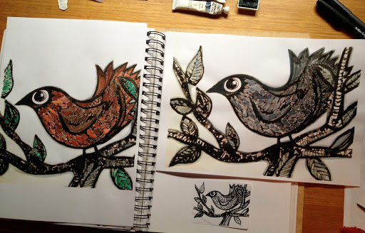 Drawing the fragments has also been an exercise in faith – the faith in my ability to represent the art already inherent in those small remnants of something useful. At times I found myself struggling with confidence – I could actually almost hear the doubting voice when I was about to tackle a particularly complex decoration. I’m practicing quietening that voice and learning to continue working in spite of it. It’s a nice feeling to make it to the other side of that doubting time and settle to work or in this case settle to play.